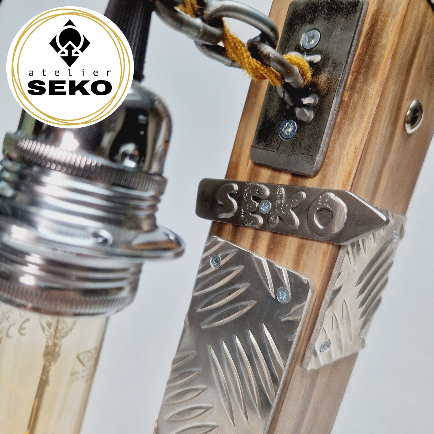 Un design asymétrique : Des rivets apparents, des plaques fixées de manière décalée et une ampoule vintage suspendue apportent une touche d'imperfection volontaire, véritable signature d'un style libre et hors normes.