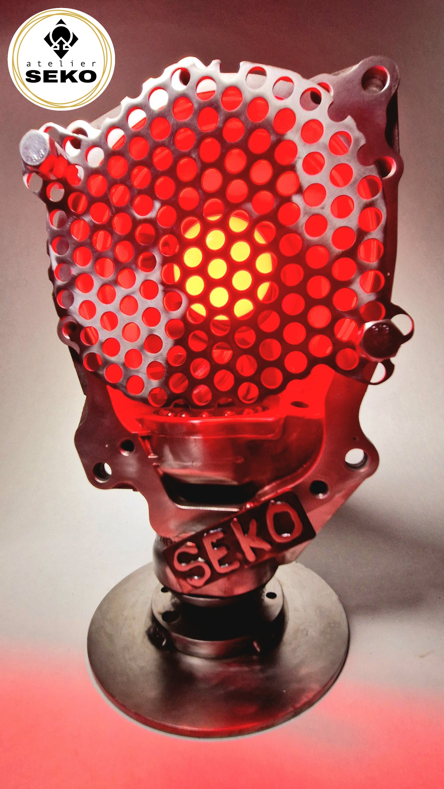 MACH ONE est bien plus qu'une simple lampe à poser : c’est un objet de design audacieux, né de l’upcycling d’un carter de transmission de BMW X1.